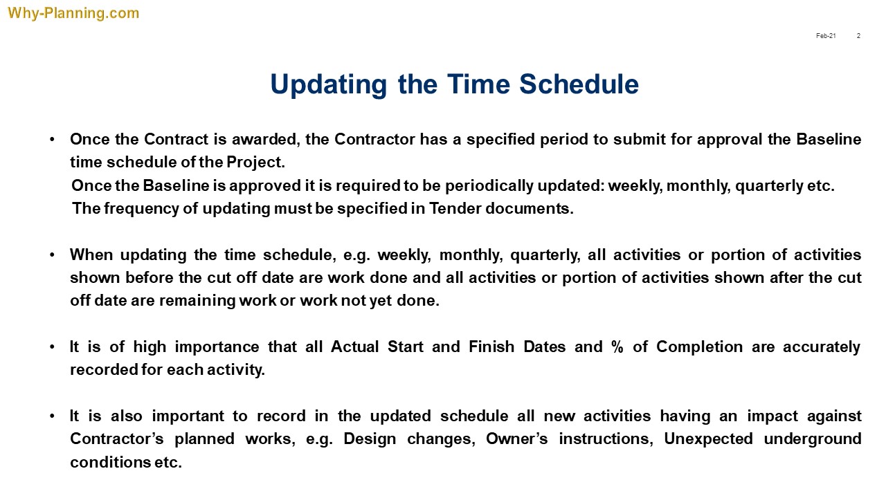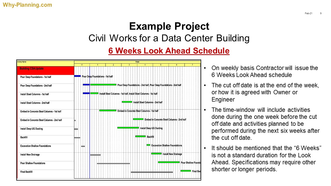 Once the Baseline is approved, periodically the planner has to update the schedule with the status of each activity at the updating date. It is the only way to know the current status of the project. Updating the project must be always based on contemporary data. After performing the update the planner is ready to produce the Look Ahead schedule reports. All is described in the presentation below. I choose as an example a Data Center project, inspired by the Data Center project in Odense, Denmark.